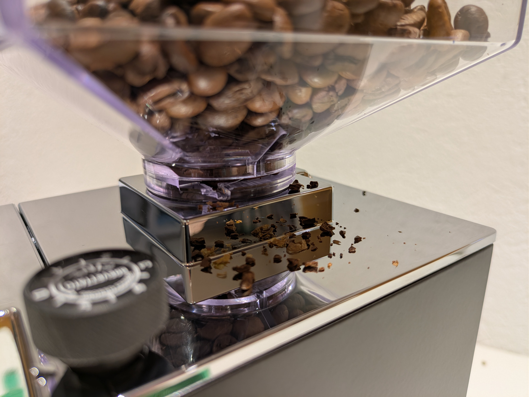 Coffee crumbs, bean dust, or small fragments often escape during grinding.